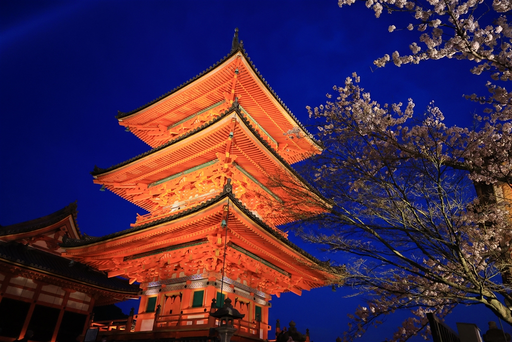 清水寺 塔と桜