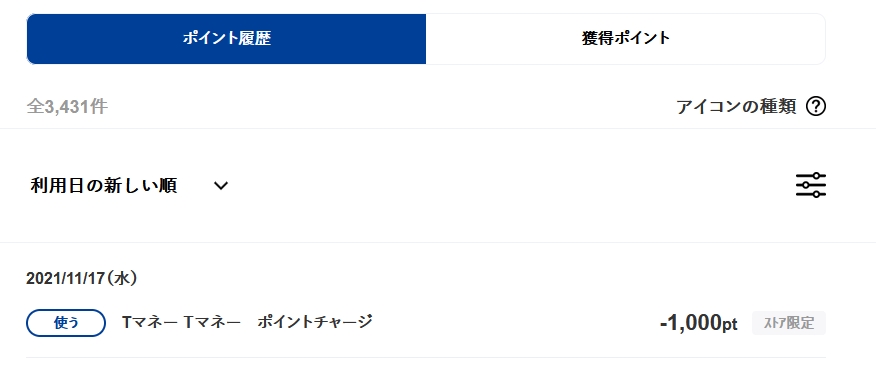 ストア限定ポイントをTマネーへチャージ