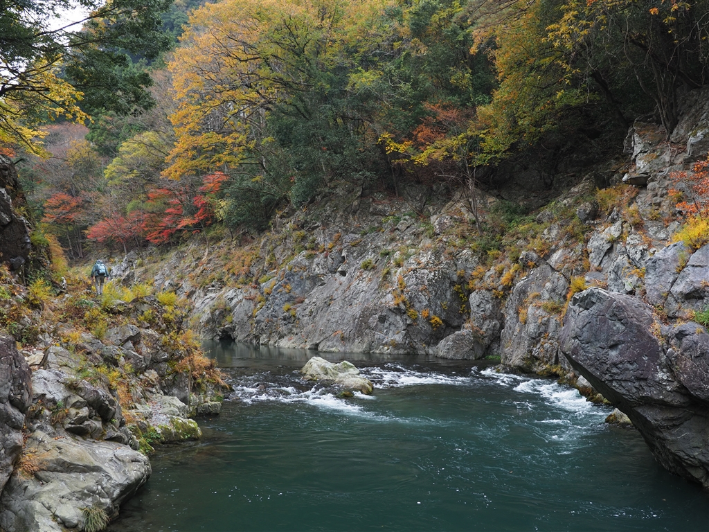 緩く蛇行しつつ渓谷は続きます