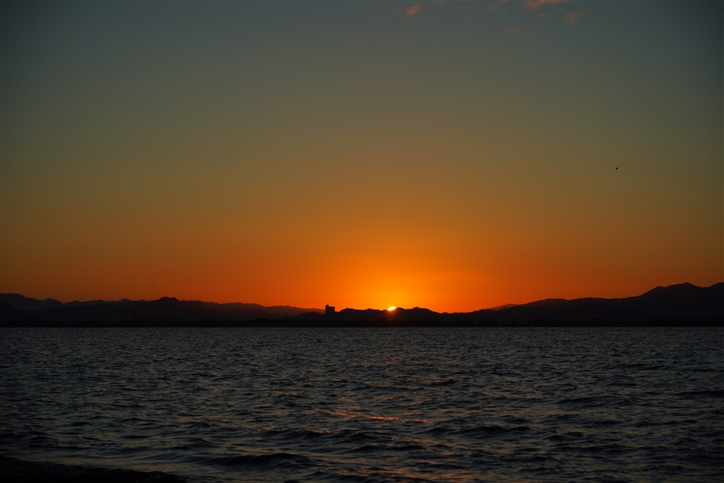 快晴の日の、日の出です