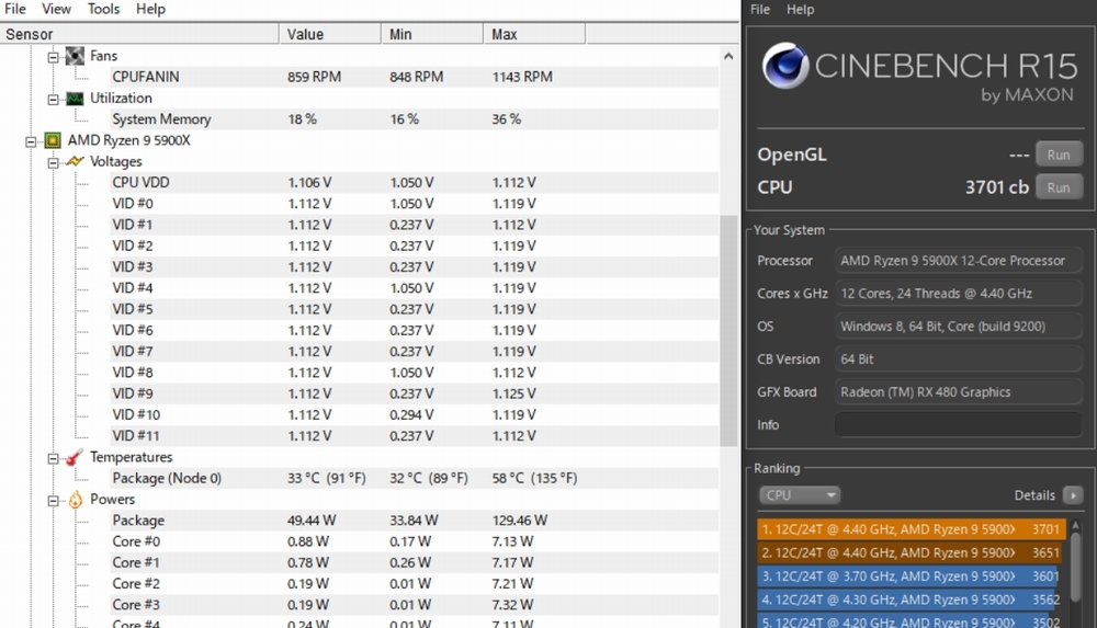 5900X 44倍設定 1.120V