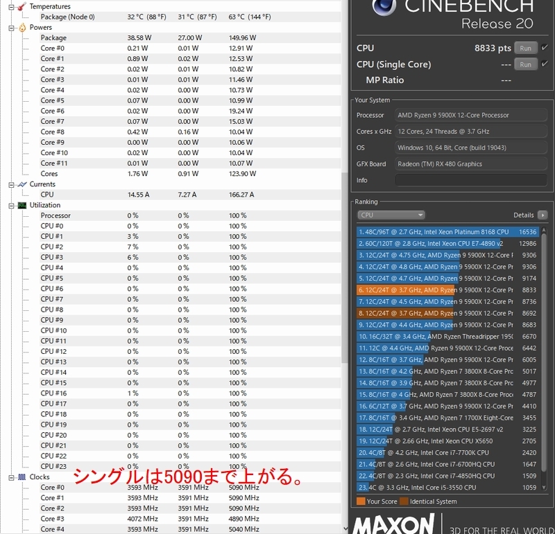 PBO2での設定 シングルは5090まで上がる