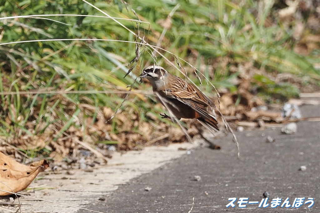 種を取ろうとジャンプしたホオジロ