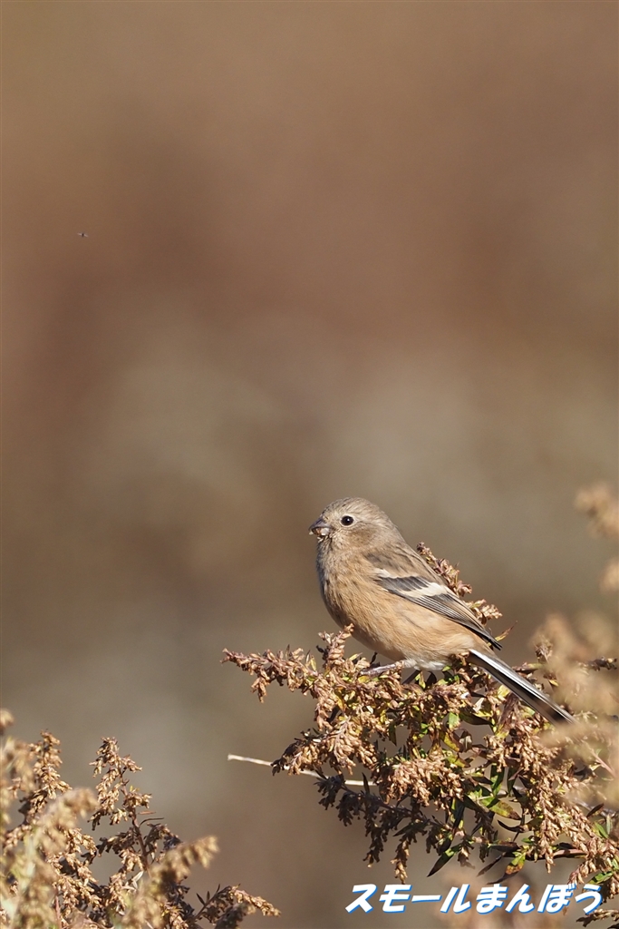 モグモグとヨモギの種を食べるベニマシコ