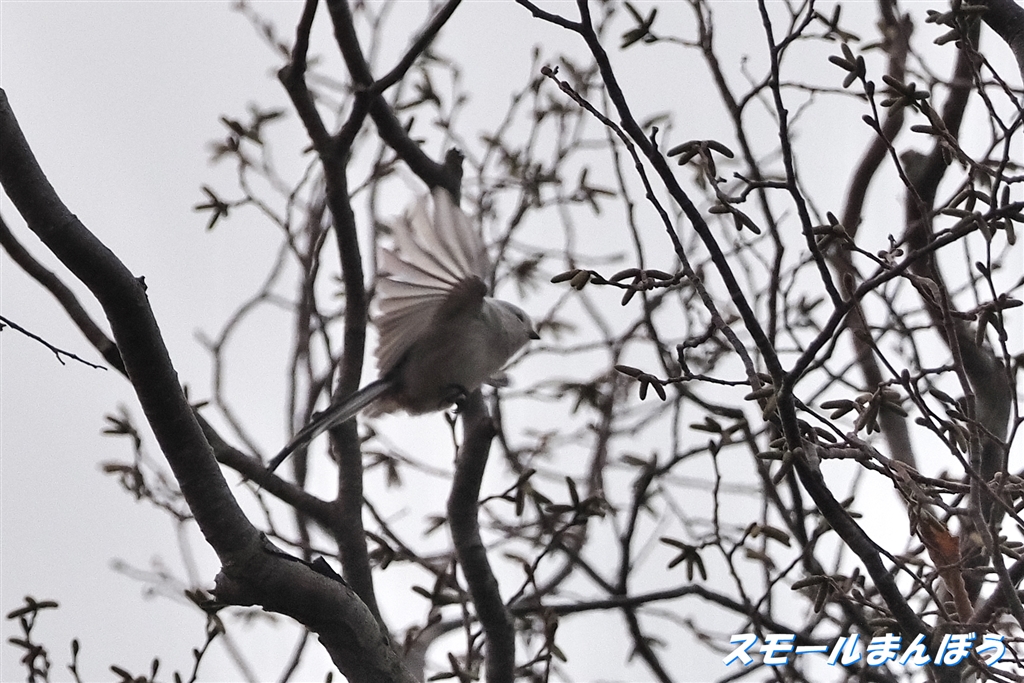 写りは悪いですが・・・高い場所にいたときのシマエナガ