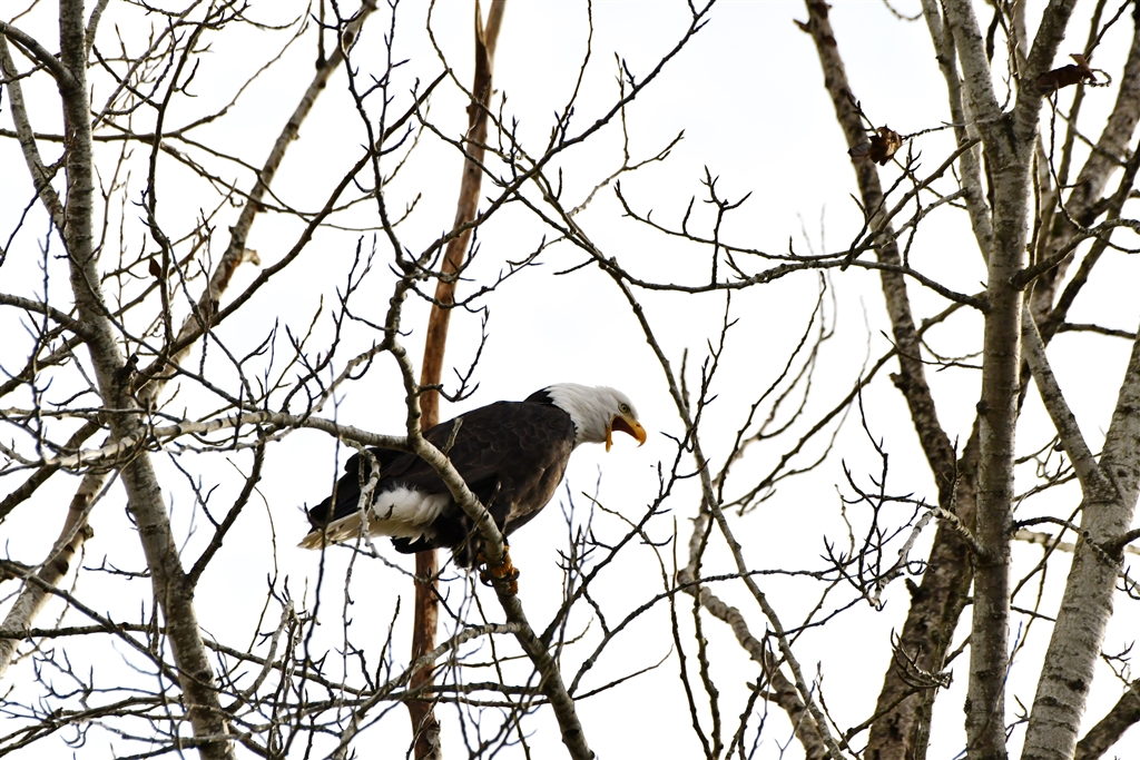 ハクトウワシ。くわっ!って、口を開けて何をしてるんでしょうか。