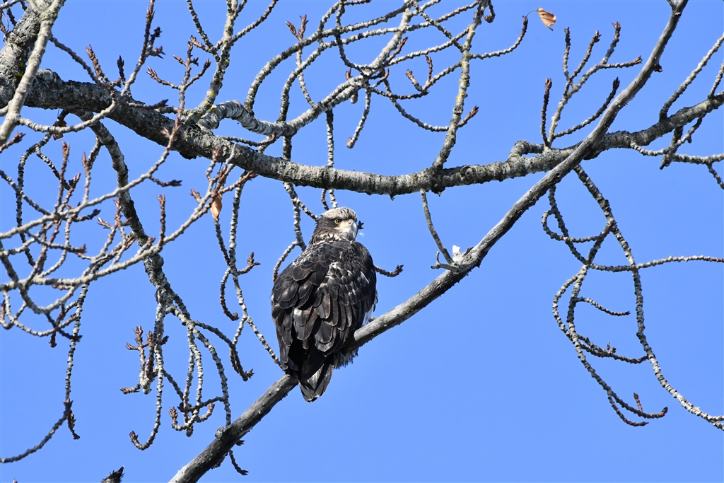 少し変わった色ですが…。ハクトウワシの若ですよね?