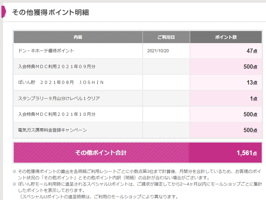 ポイント明細