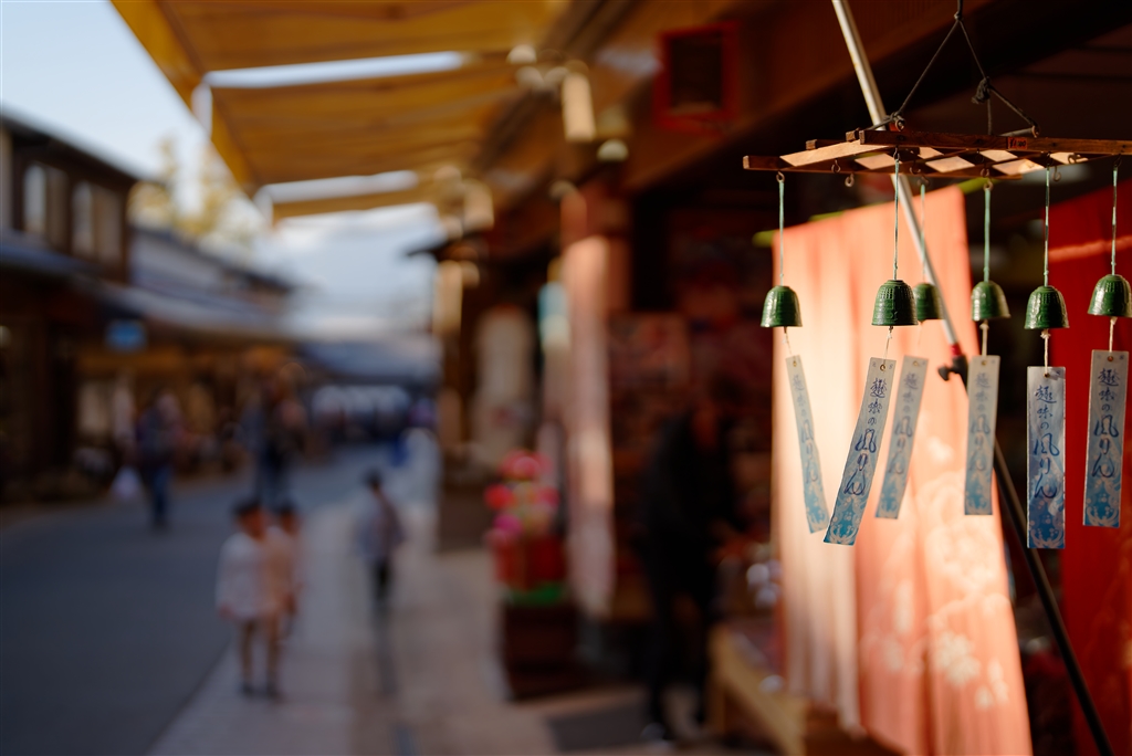 冬の夕暮れの風鈴。短冊を透過するオレンジの光は表裏の文字を浮かび上がらせました。