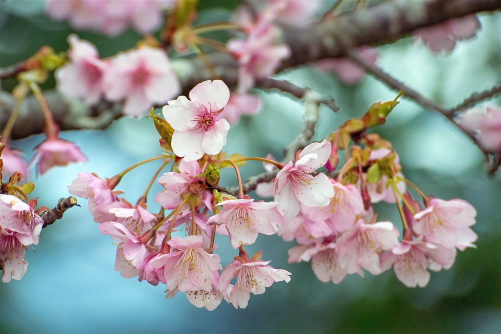 薄紅色の桜も来て