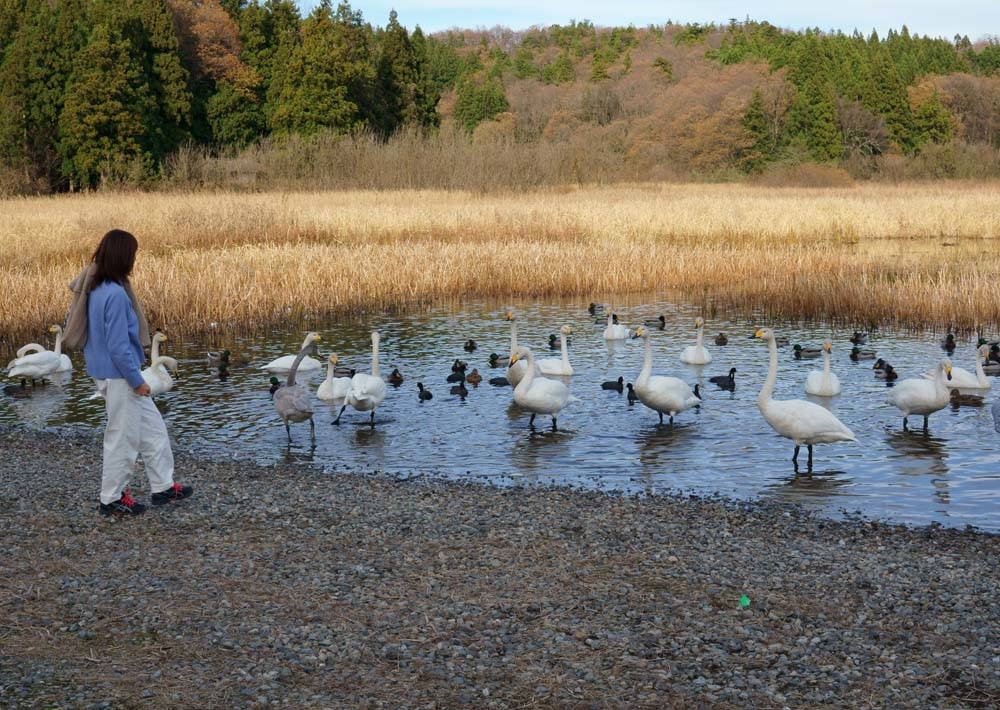 餌をやってるオバちゃん