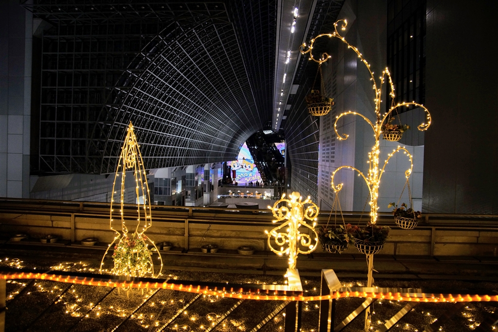 駅ビルの巨大な吹き抜け、正面奥が大階段