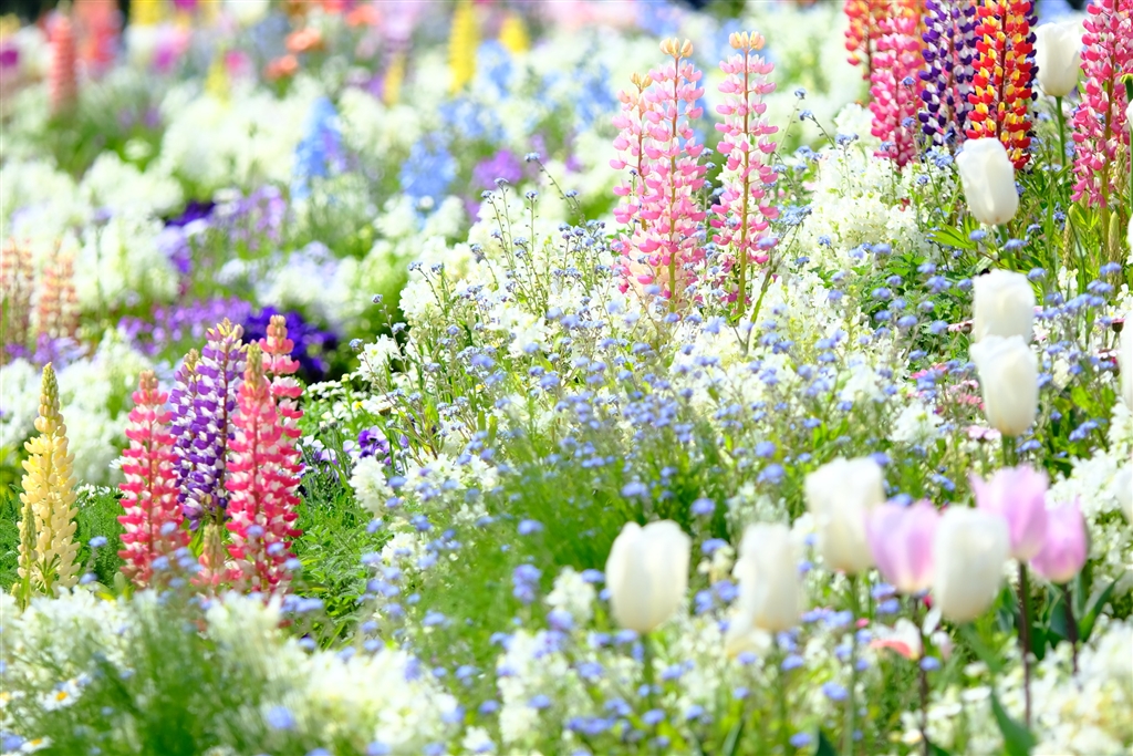 4月。賑やかな花壇。