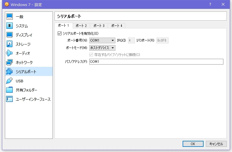 2 [Virtualbox] W7起動前に行う 設定・シリアルポート