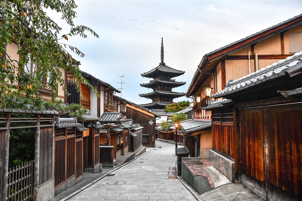 京都の八坂通りの五重塔です、朝イチで人通り無し。