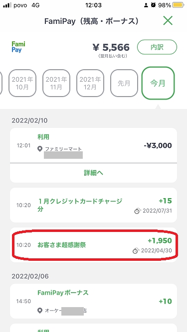 ファミペイ残高