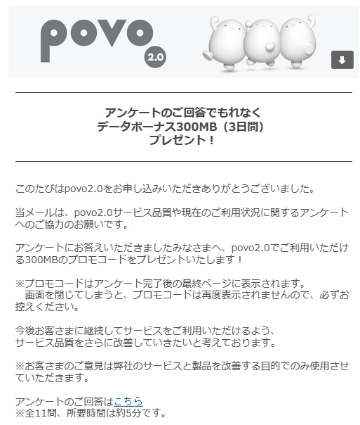 データボーナス300MBプレゼント!アンケート