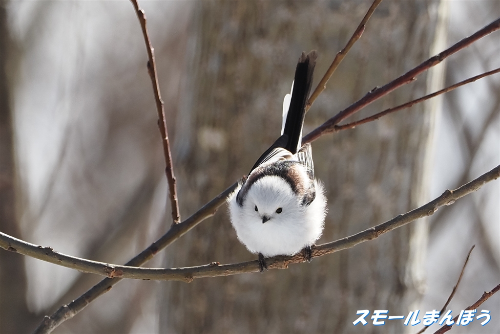飛ぶ素振りをして止めたシマエナガ