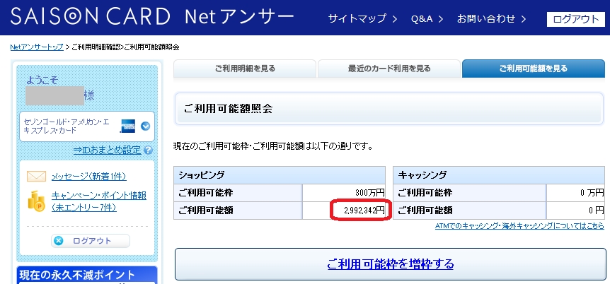 『Netアンサーでの利用可能額照会』 クレジットカードすべて マグドリ00さんのクチコミ掲示板画像1/1