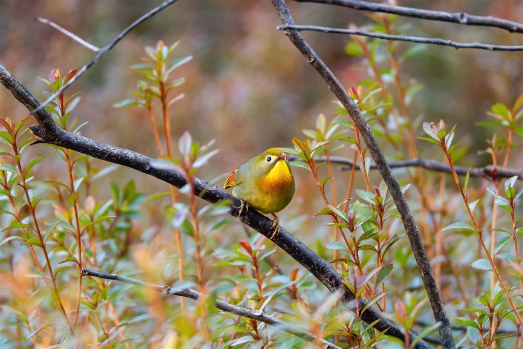 枝留まりのソウシチョウ−2 ウグイスよりも外来種の方が増えてきています