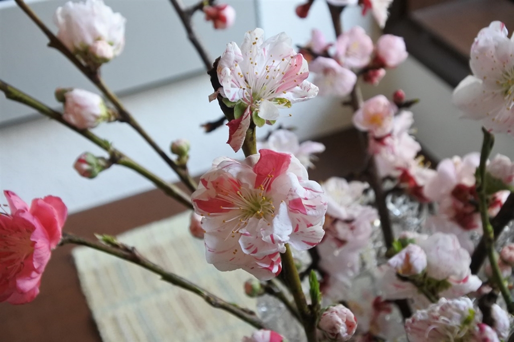 赤、白が混じった源平モモです。