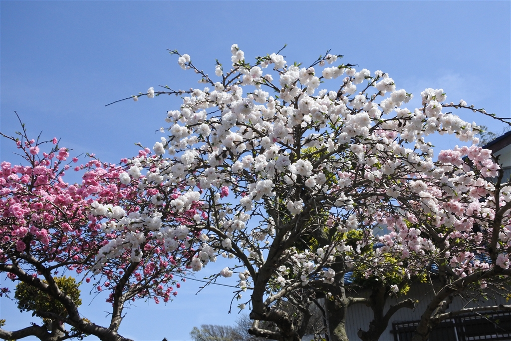 左の一本は桃色、右の一本の左の枝は白色、右の色は薄桃色。