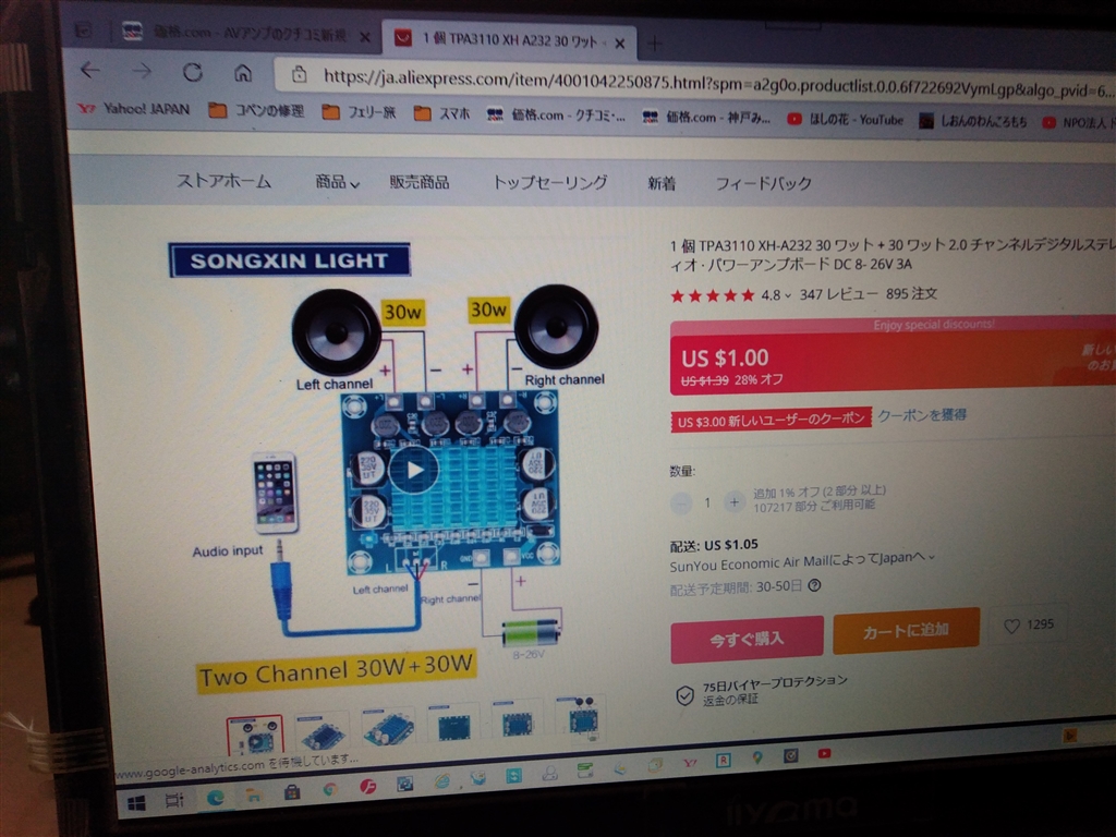 TPA3110を使ったシンプルなデジタルアンプで送料無料500円もしません