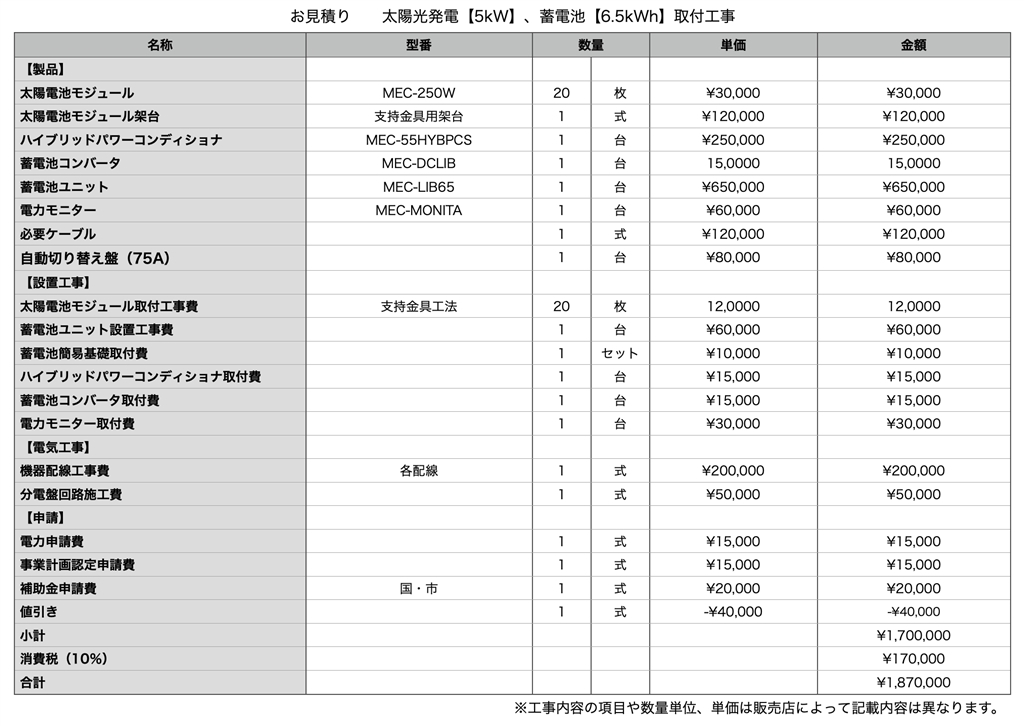 『見積もり内容の参考にして見てください。』 太陽光発電 シャープすべて みんエネさんのクチコミ掲示板画像1/1