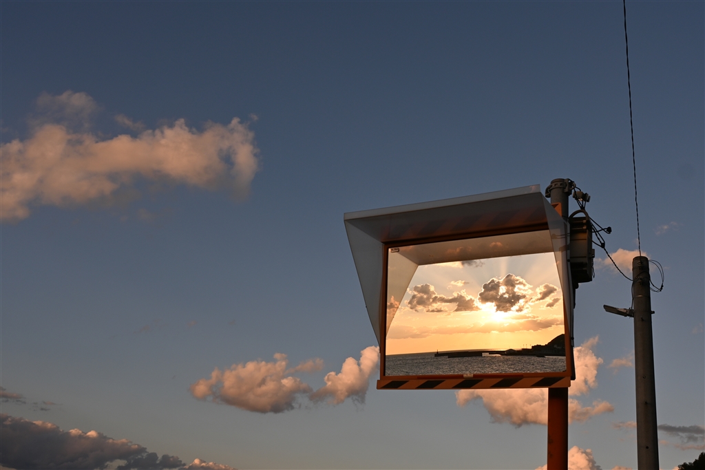 ミラーにも夕陽が、、、