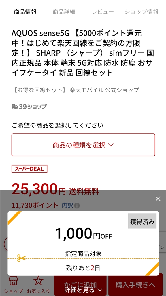 購入後は1,000円クーポンのみ