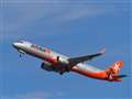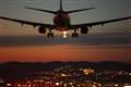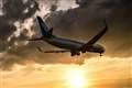 頭上を飛んでいく飛行機を
