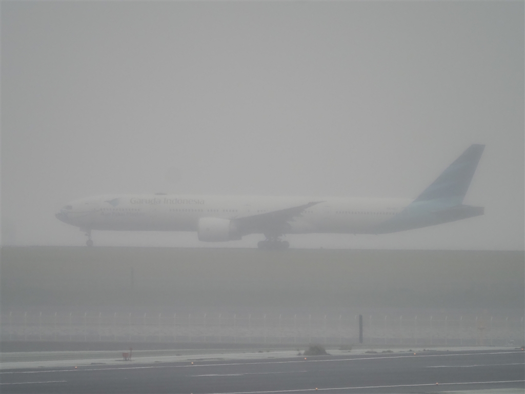 2分後には洋上がガスで覆われ、せっかくのガルーダ航空マスク仕様が・・・