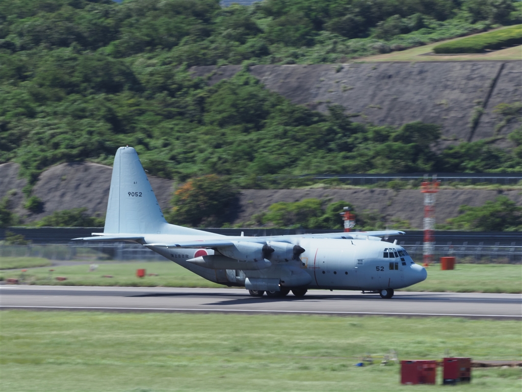 長崎空港にやってきた海自のC130となりの海自基地への物資搬入?