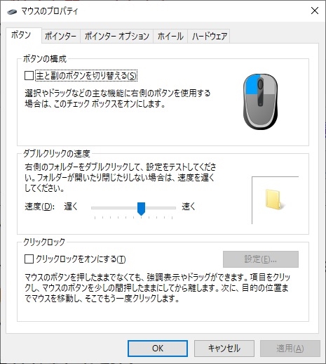 マウスのプロパティ画面