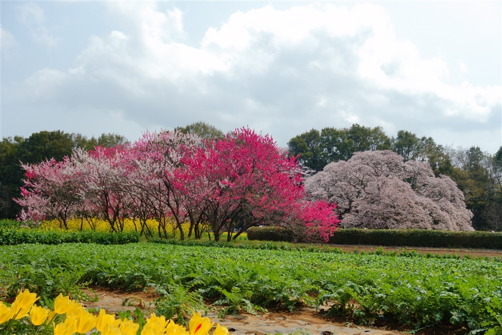 大桜は右奥。手前は桜と桃を植えてあるようです