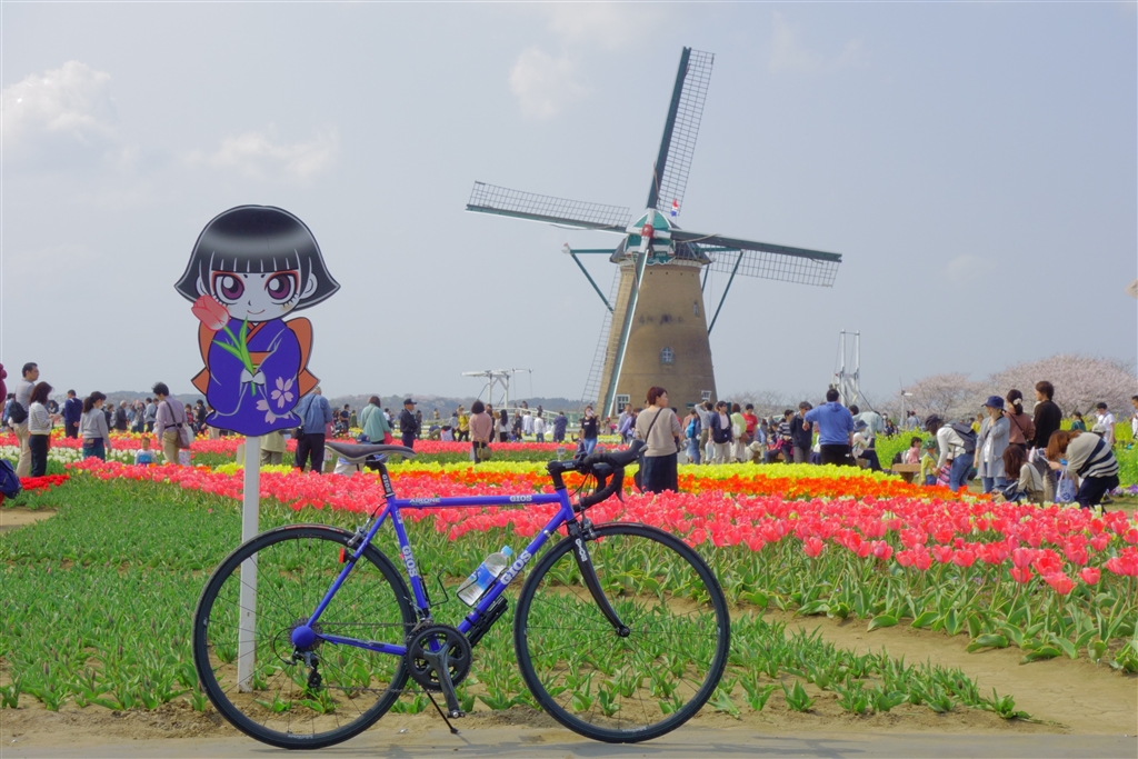 佐倉チューリップフェスタで愛車とカムロちゃんと風車