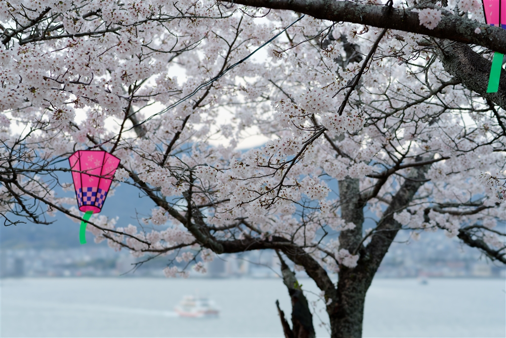 船をぼかして桜を狙いました