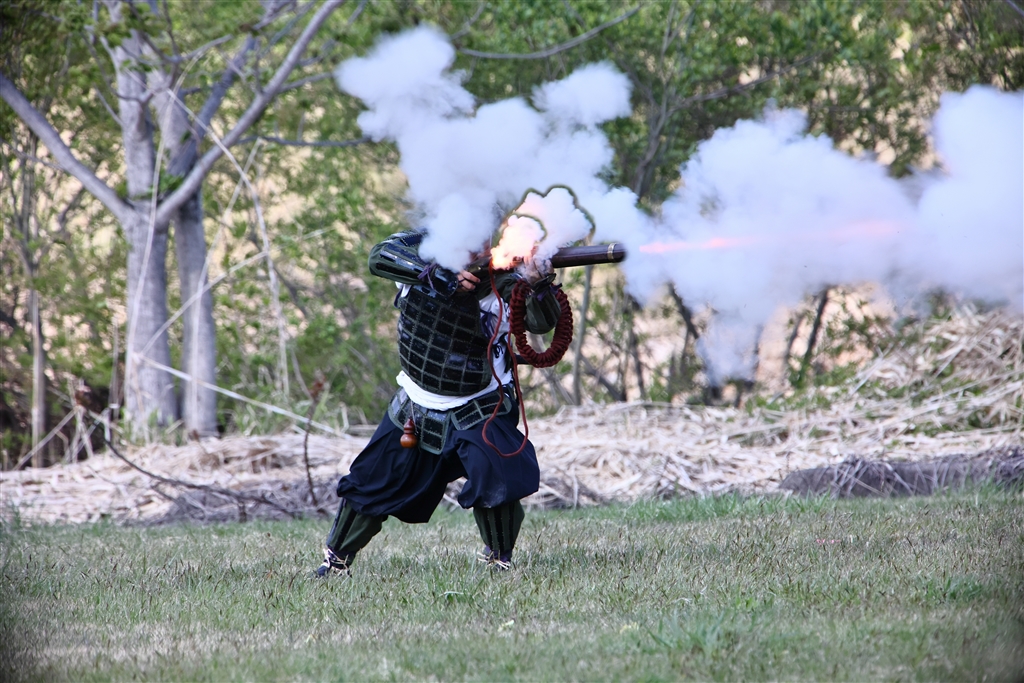 発砲で火と煙の出具合が分かるように3枚の写真を1枚に合成(本文参照)