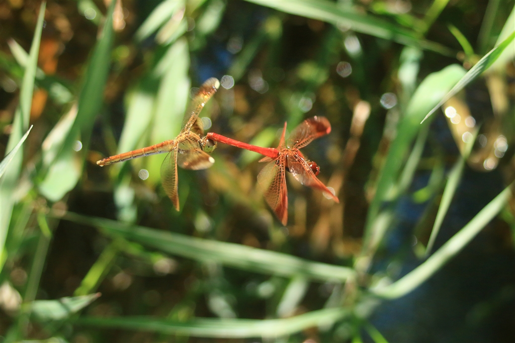 同じ連結スタイルでカップルが草むらの中を飛ぶ