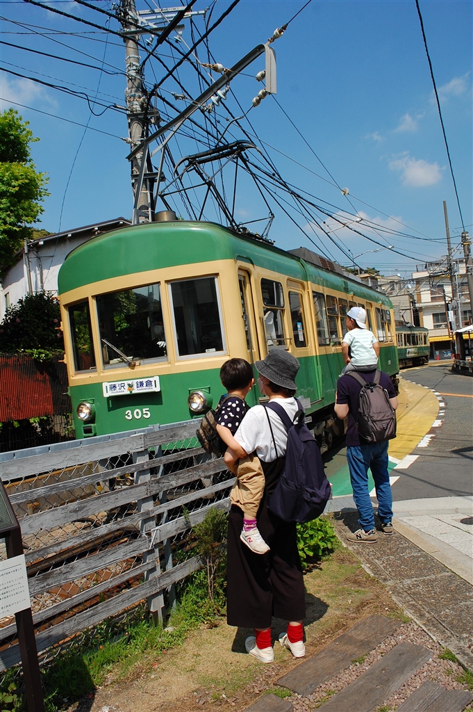 江ノ電踏切 ちび鉄が二騎