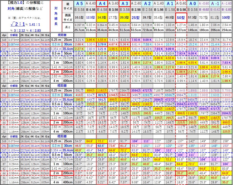 【視力】と(√2:1≒1.4:1)A系用紙サイズ・画面サイズ