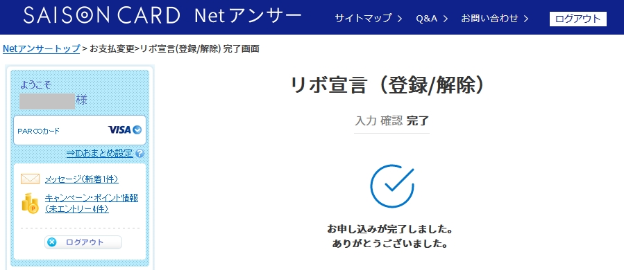 リボ宣言解除完了