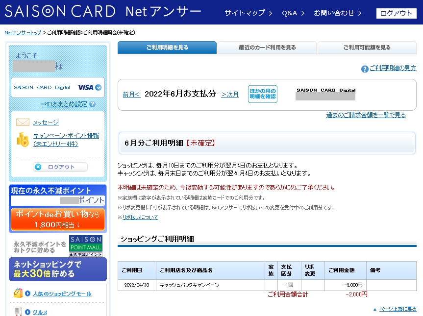 キャッシュバックキャンペ−ン2千円獲得!!