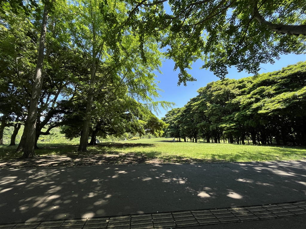 森林公園のベンチからの眺め