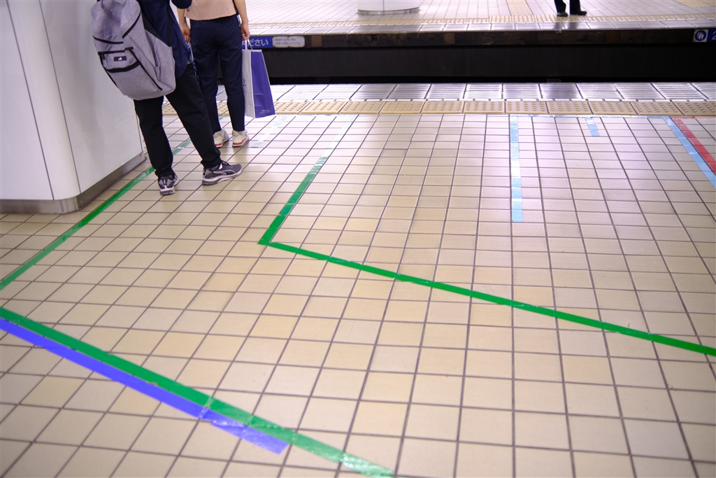 色分けされた行き先案内のテープ