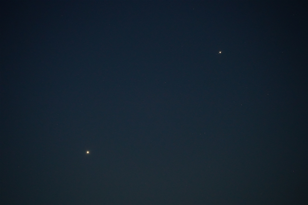 火星と木星(右上) 木星の衛星4個は普通の写真レンズで簡単に写せます