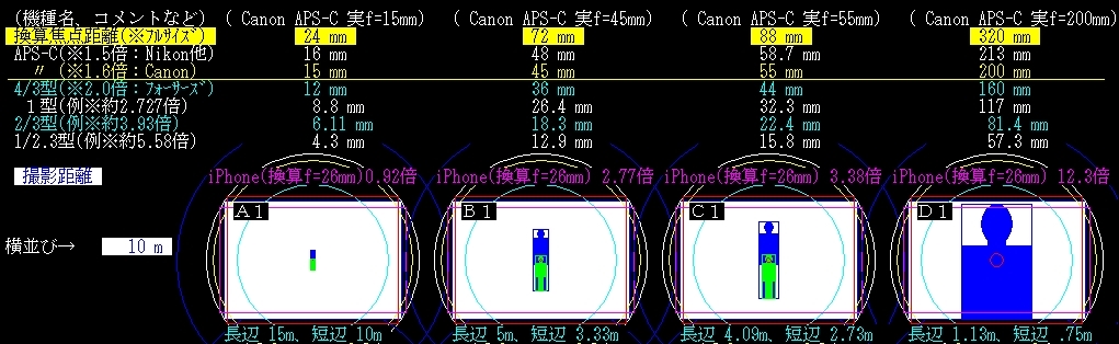 距離【10mのみ】実f=15mm、45mm、55mm、200mm