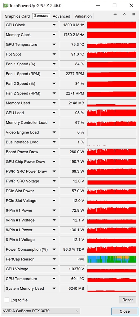 RTX3070 暁月ベンチ中の状態