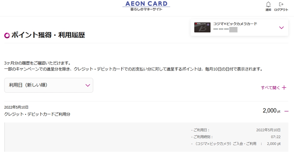 『(コジマ×ビックカメラ)ご入会・ご利用2,000 pt獲得』 クレジットカードすべて マグドリ00さんのクチコミ掲示板画像1/1