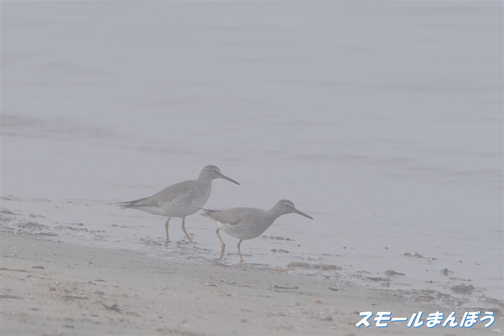 霧の中のキアシシギ(白すぎる(^_^;)